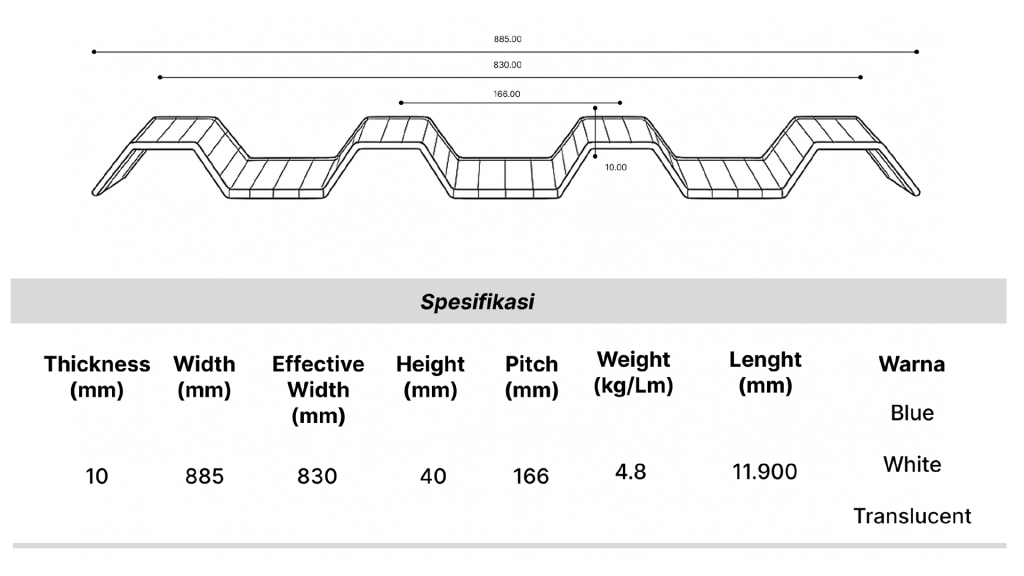 Suntuff adalah atap gelombang berongga, dengan performa prima, dibuat dan di formulasikan dengan menggunakan bahan-bahan baku terbaik. Sangat kuat dan kokoh.
